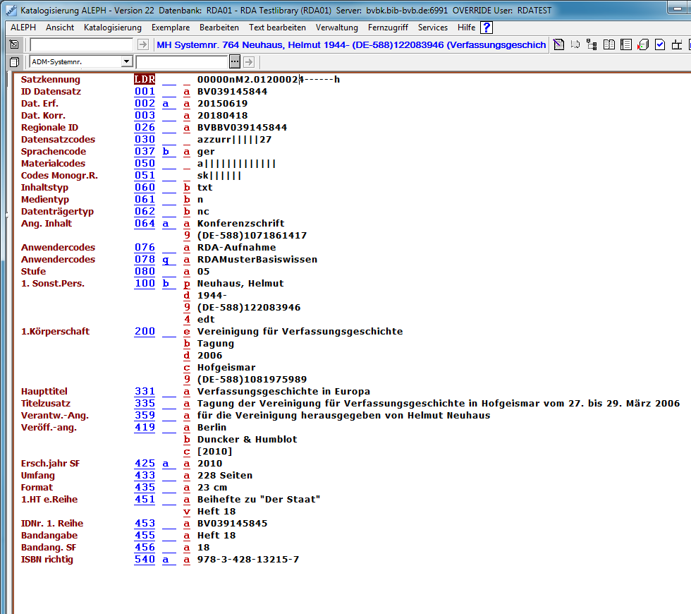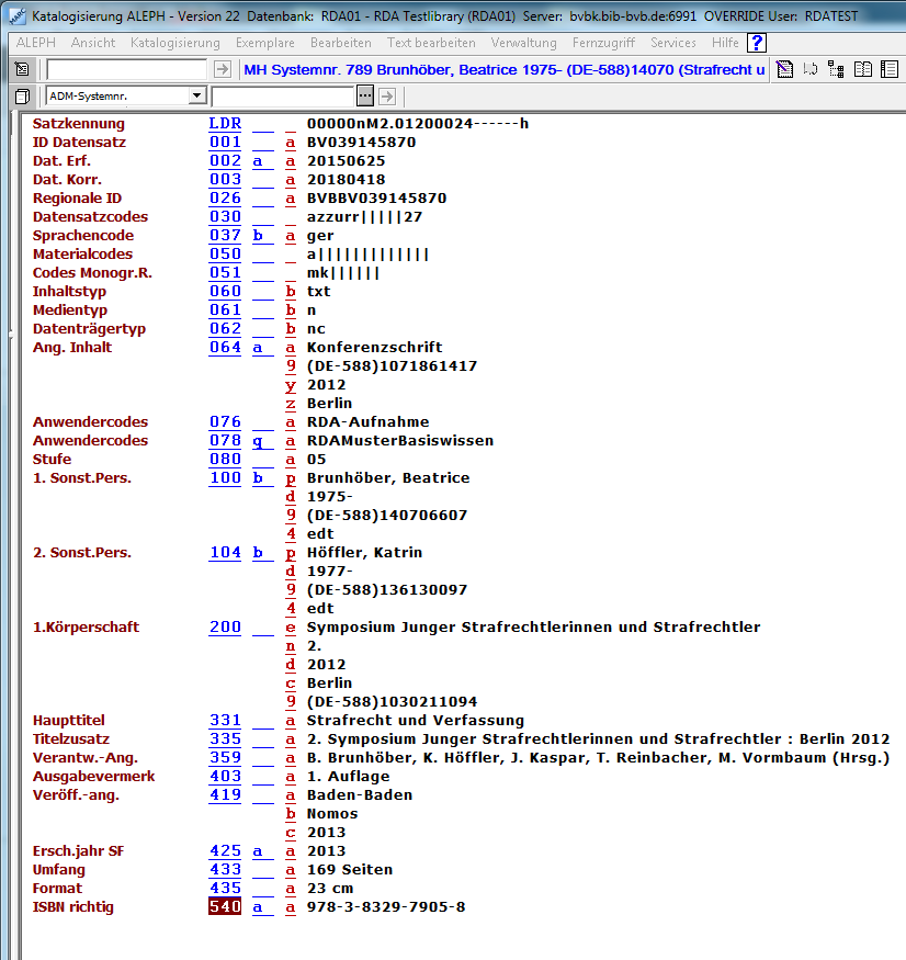 - Neuaufnahmen und Korrekturen im B3Kat