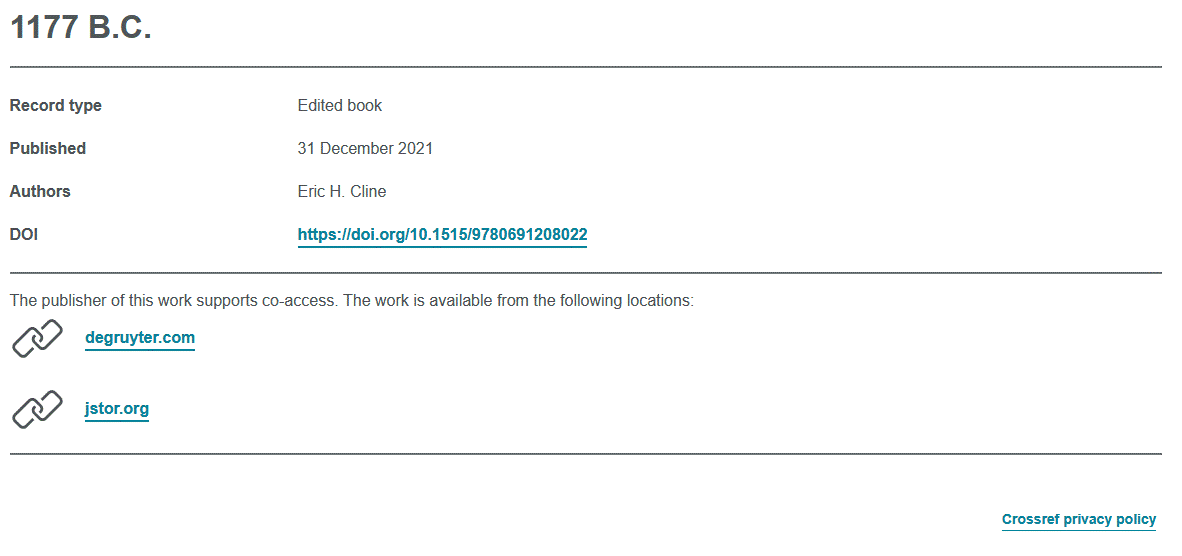 Bietet ein Verlag über seine DOI „multiple resolution“ (co-access) an, führt der DOI-Link nicht direkt zum Titel auf der Verlagsseite, sondern auf eine Crossref-Seite, auf der alle Anbieter für diesen Titel aufgelistet sind.